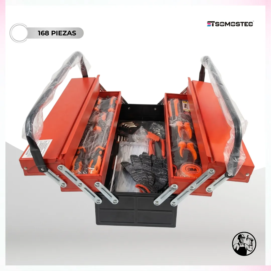 La Caja de Herramientas de 168 piezas Y81168 es la solución perfecta para todo tipo de reparaciones y proyectos de bricolaje, ya sea en el hogar, en el taller o para trabajos automotrices. Diseñada pensando en la organización, la durabilidad y la funcionalidad, esta caja es una opción imprescindible para profesionales y aficionados por igual. Su dise?o único, similar a una caja de pesca con doble piso y apertura tipo libro, facilita el acceso a las herramientas y maximiza la eficiencia.