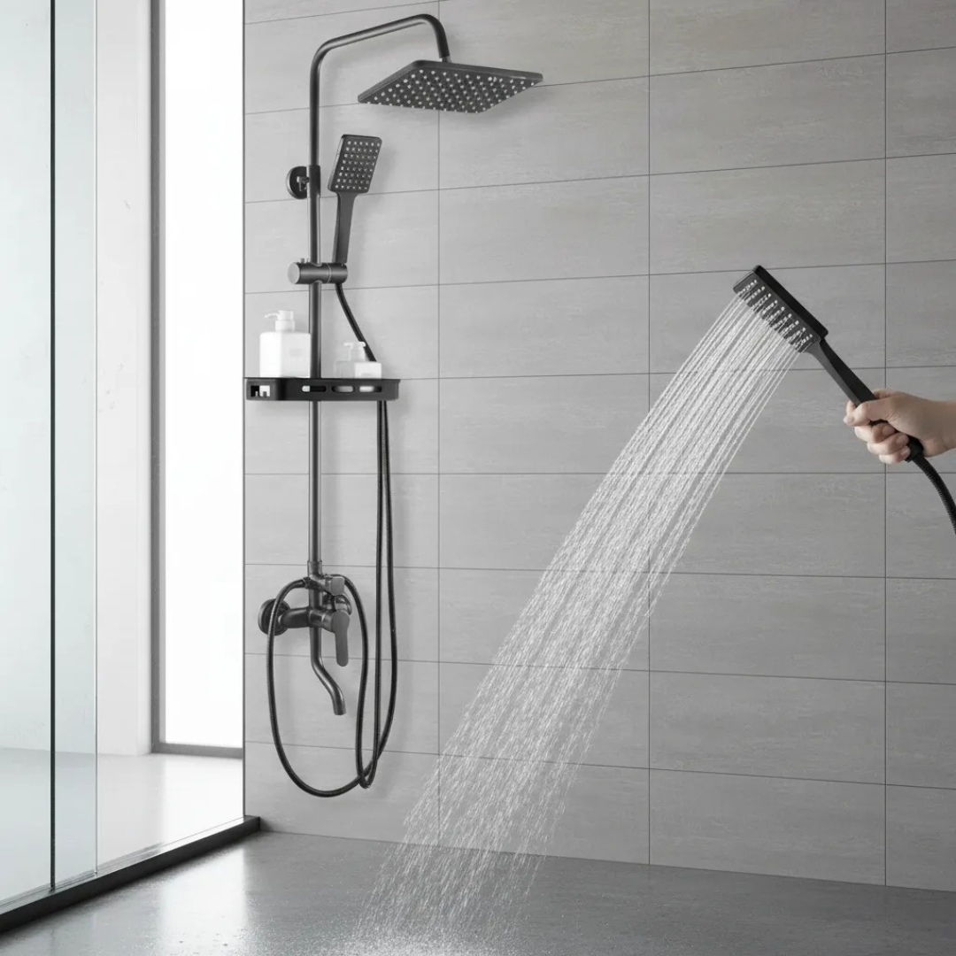 La ducha W-1043 combina un diseño funcional y elegante en acabado cromado. Su rociador redondo extraplano garantiza una cobertura uniforme tipo lluvia, mientras que el duchador manual con soporte regulable ofrece practicidad en el uso diario.