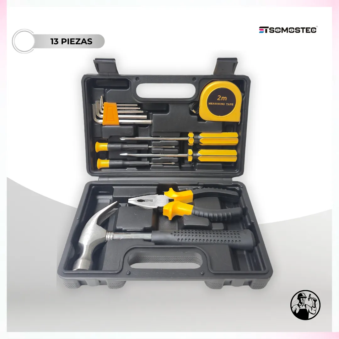 El kit básico de herramientas para el hogar de 13 piezas reúne lo esencial para cubrir tus necesidades básicas de mantenimiento y reparaciones en casa. Gracias a su dise?o compacto y su construcción duradera, es una opción confiable y práctica para cualquier propietario. Ya sea para arreglos cotidianos o proyectos de bricolaje, este set será tu mejor aliado.