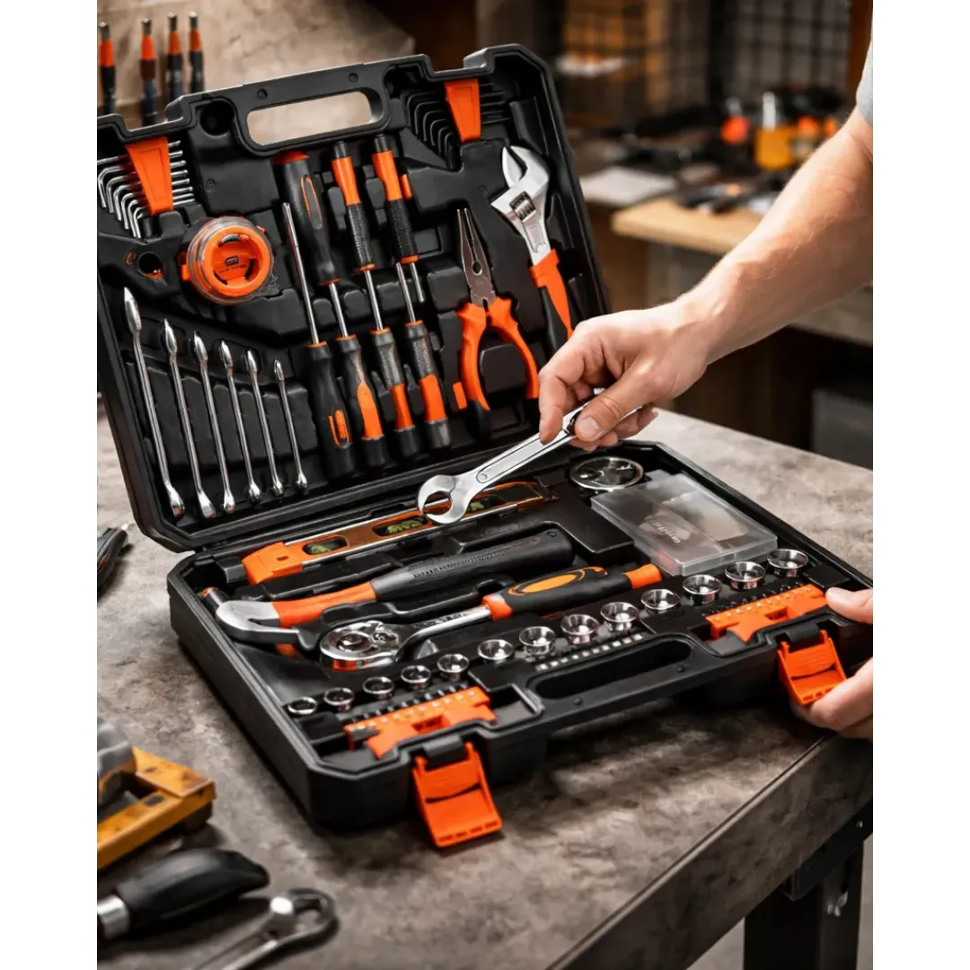 Herramientas 140 Piezas. Diseñado para el hogar, el taller o trabajos más exigentes, incluye una variedad de herramientas esenciales y versátiles, organizadas para facilitar su uso y almacenamiento.