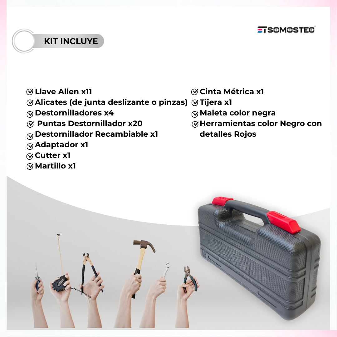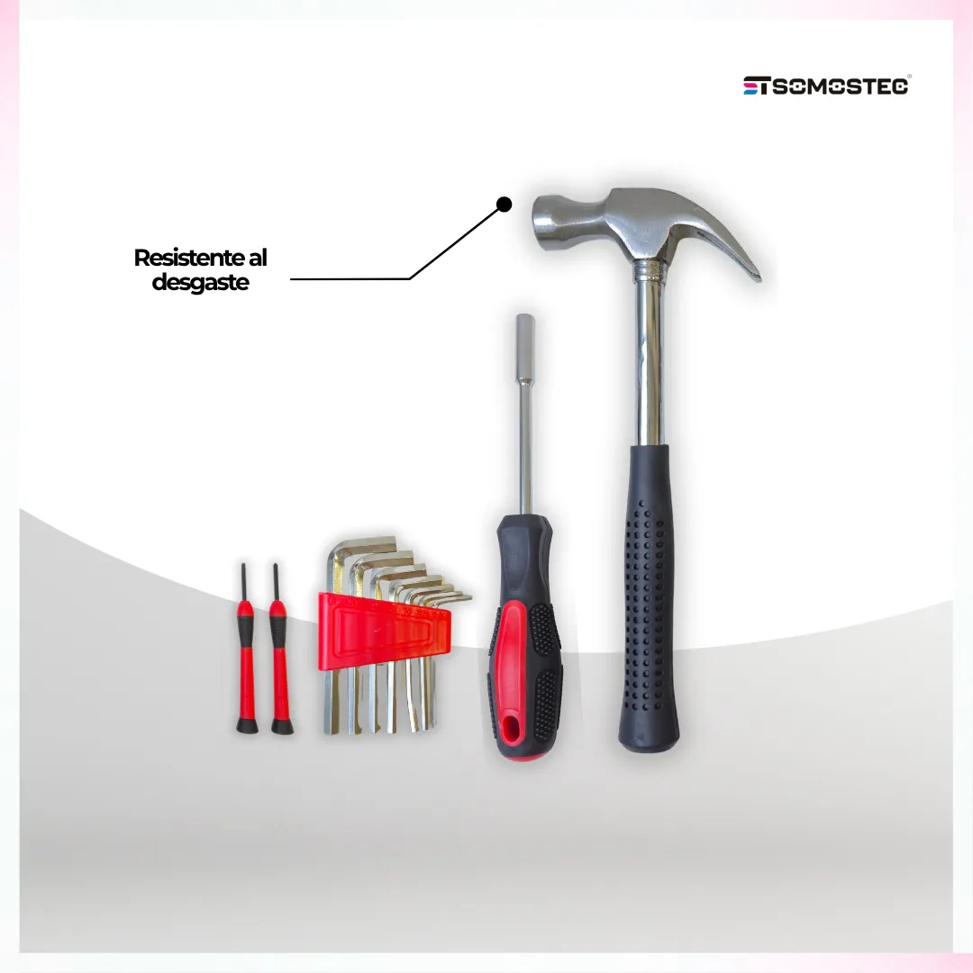 - Practicidad: Herramientas esenciales organizadas para cualquier reparación rápida.